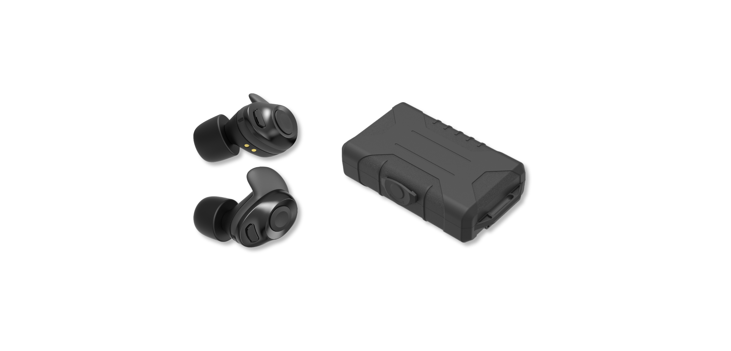 These Bluetooth-enabled earplugs enhance hearing protection, situational awareness, and communication in noisy environments. They offer volume control, mode switching, and phone calling/answering through a connected app (hearSafe), and can be charged via a USB-equipped case that also serves as a storage solution. Their compact, lightweight design ensures comfort and compatibility with most head-mounted personal safety gear.